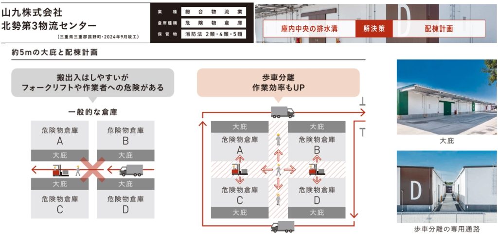 西村:その他に、面白いパターンとして載せました。通常、こういう細長い危険物倉庫は、やはり倉庫内が使いづらいということで作ることは少ないかと思います。
